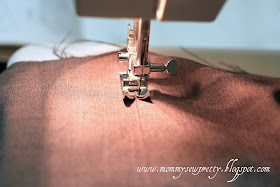 9. For the waistband, I've this beautiful elastic band that I bought from the Textile Centre but have not found the use for it. The color simply match the pants and added the nice color to it. The method is the same as how I sew the circle skirt.